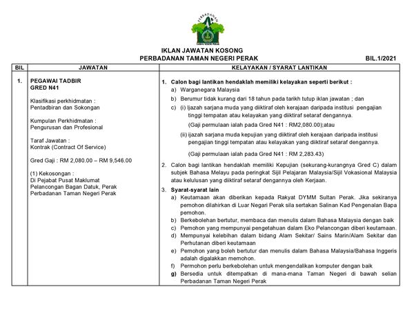 Jawatan Kosong Di Perbadanan Taman Negeri Perak Tcer My